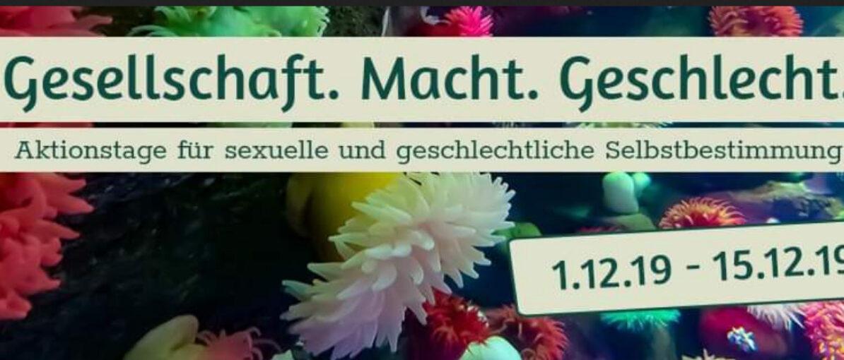 Auch wir beteiligen uns an den Aktionstagen Gesellschaft.Macht.Geschlecht und veranstalten dazu einen kleinen Lesekreis. Wir werden kurze Ausschnitte aus Büchern vorlesen und anschließend diskutieren. Von Shakespeare bis Zadie Smith, ob über homosexuelle Liebesbeziehungen oder Kämpfer*innen für sexuelle Selbstbestimmung im Nahen Osten oder Afrika, die Auswahl ist divers. Gerne könnt ihr auch selbst Büchern mitbringen und diskutieren.