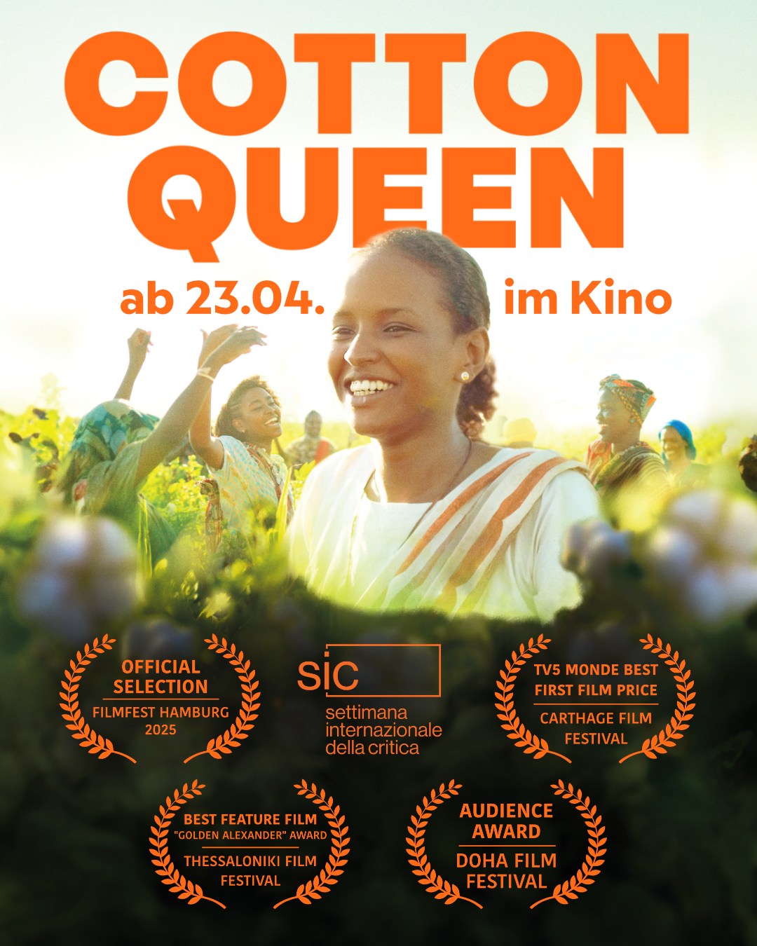 Das Bielefelder Kino „Kamera“ zeigt diese Woche mit COTTON QUEEN den ersten Film ersten Spielfilm einer sudanesischen Regisseurin. Der Film bietet eine seltene filmische Perspektive auf das Leben sudanesischer Frauen und Mädchen und verhandelt die Themen weibliche Beschneidung und arrangierte Ehe auf eine poetische Weise, die aufmerksam macht, aber keine Klischees bedient.